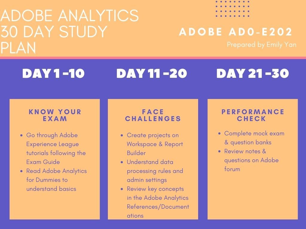 Have you read through the 700-page Adobe Analytics reference? Have you spent $3,600 on the official course? If the answers are "NO," relax, and I will share the best practices to help you get the Adobe Analytics Business Practitioner Certificate with this study plan in one month.