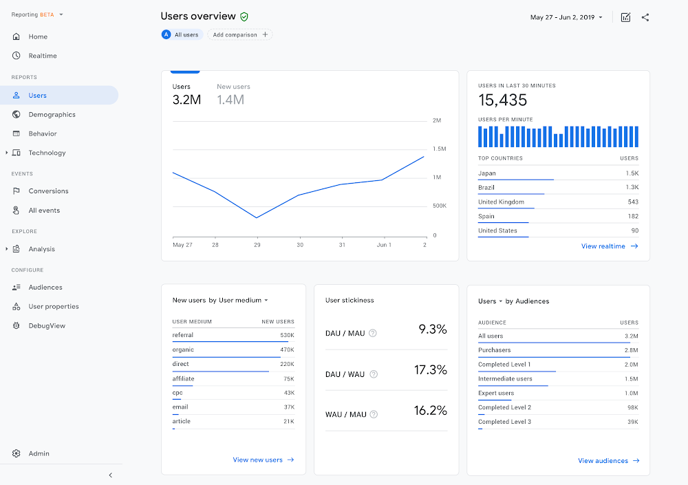 Your old good Google Analytics will do a site crawl to determine if your site suffers from SEO issues. In the meantime, Google Trends competitive analysis tool roams the internet looking for mentions of your brand, so you can examine whether those mentions are increasing or decreasing over time. You can also benchmark this data against your competitors.